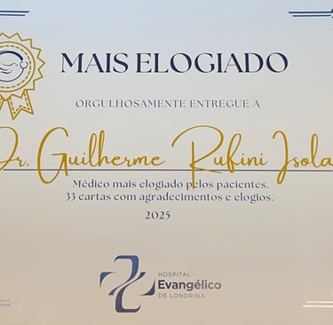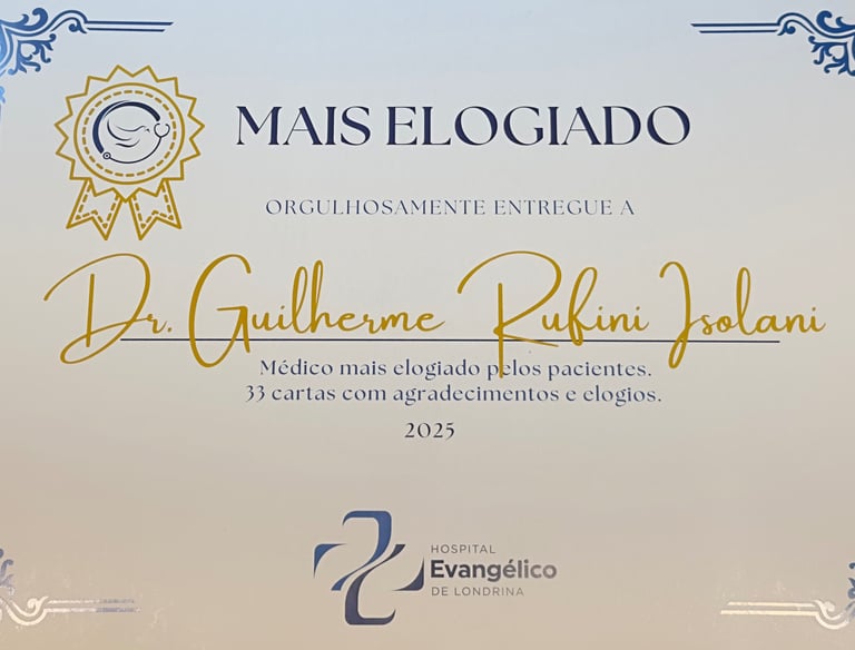 Pelo Segundo ano consecutivo Dr. Guilherme Rufini foi reconhecido pelo Hospital Evangélico de Londrina como o Dr. mais elogiado pelos pacientes.